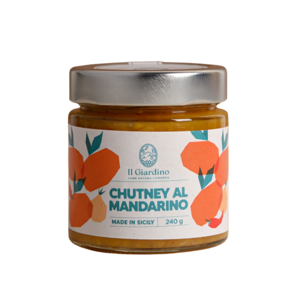 The citrus and floral notes of Sicilian mandarin are fully brought to life in our homemade chutney, a truly unique product with a distinctly sweet, delicate and velvety flavor.A warm and versatile pairing for ethnic dishes and fresh cheeses, this chutney reflects how creativity has always been essential in discovering the endless possibilities offered by the genuine products of our Giardino.