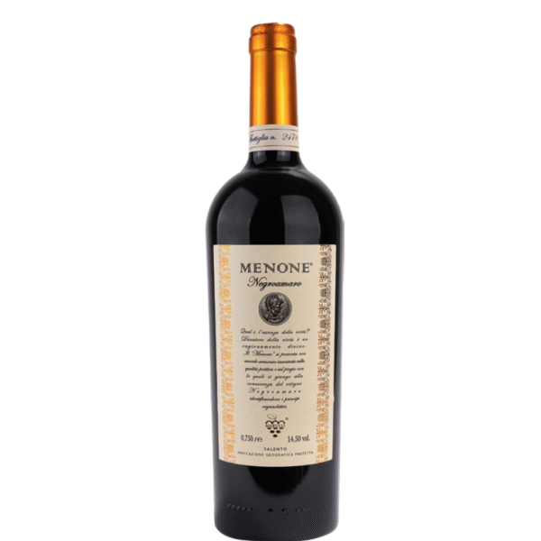 Menone Negroamaro Salento – 100% Negroamaro from Salento, expressive of the region’s terroir; fresh and local character.