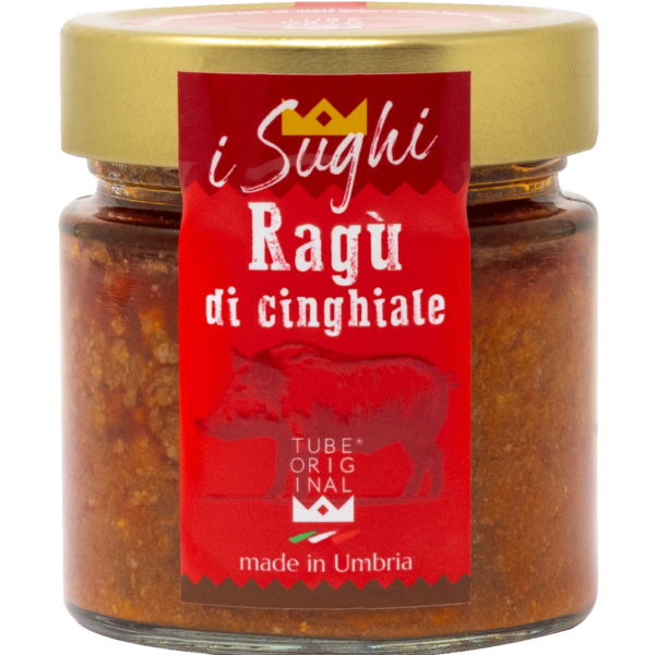 Beef “Vitellone Bianco dell’Appennino Centrale IGP” (Central Apennine White Veal PGI) Chianina breed min. 50%, pork, tomato pulp, olive oil, tomato paste, white wine (contains sulfites), onion, red wine (contains sulfites), celery, salt, paprika, carrots, garlic, white pepper.