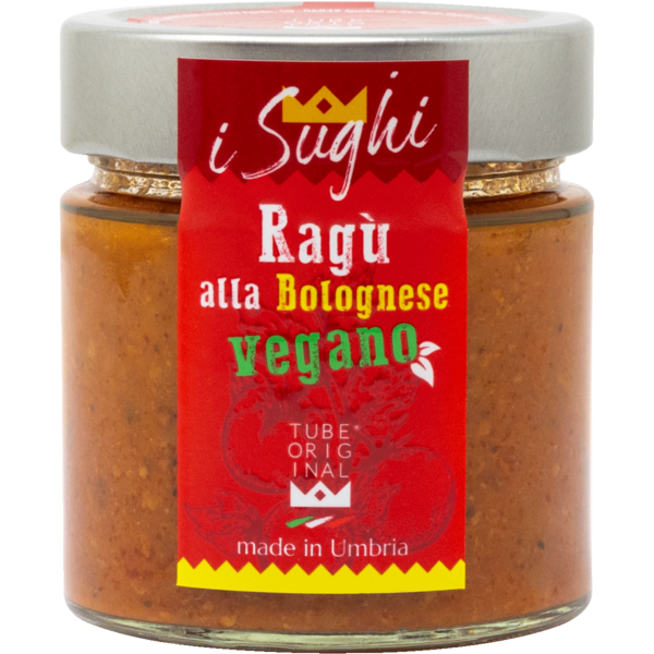 Ragù alla bolognese “vegan” 200g – A vegan take on traditional Bolognese, combining tomato, vegetables, and plant-based protein to recreate the texture and depth of the classic ragù.